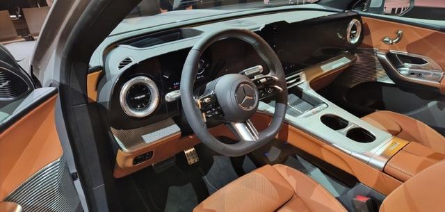 进入到内部,属于奔驰的优势完全得到展现,都说奔驰不运动,但在这款车的刻画下,即便是宝马在它面前也不敢“造次”。贯穿在车头上的超级仪表,以及一些细节上的点缀,高级感再次升华,两侧的大孔径出风口也镶嵌了银色装饰,带来了刚好的视觉冲击。 但方向盘没有明显改变,还是保留家族式设计。座椅方面也是更倾向于运动车型,好在坐垫的厚度增加,一定程度也能提升舒适度。第二排,最让人疑惑的还属地板上隆起的设计,都新能源了为何保留这样的设计?其实这款车就是基于燃油版打造而来,这样解释是不是就更好理解了呢!